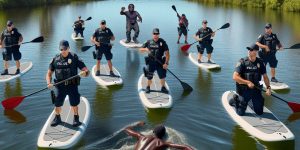 Utilizing paddleboards, a staple for recreational activity in Florida’s waterways, the officers displayed agility in responding to the unique situation. The vibrant scene played out against the backdrop of lush, tropical foliage, as officers skillfully maneuvered the paddleboards, maintaining communication and coordination to close in on the fugitive.